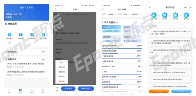為提升企業(yè)辦事便捷性,宿州市住建局打造工改APP,為企業(yè)進行重要信息的查詢、簡易事項的申報提供便捷的渠道,實現(xiàn)工程建設項目“掌上辦”“指尖辦”。另一方面,也可為主管部門提供業(yè)務的批復流轉、超期提醒、統(tǒng)計分析,實現(xiàn)業(yè)務辦理“指尖審”。