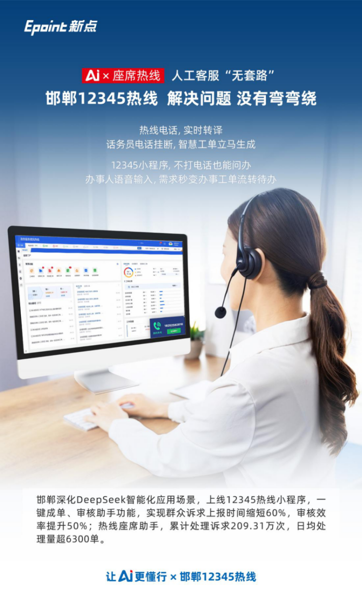 座席助手:“我們寫(xiě)工單的時(shí)候,系統(tǒng)能把與群眾的對(duì)話自動(dòng)轉(zhuǎn)成文字,還能智能推薦問(wèn)題類型,方便多了?!弊挚赏街悄苻D(zhuǎn)譯—智能填單—智能派單,平均通話時(shí)長(zhǎng)減少30秒,高峰期接通率提升45%。